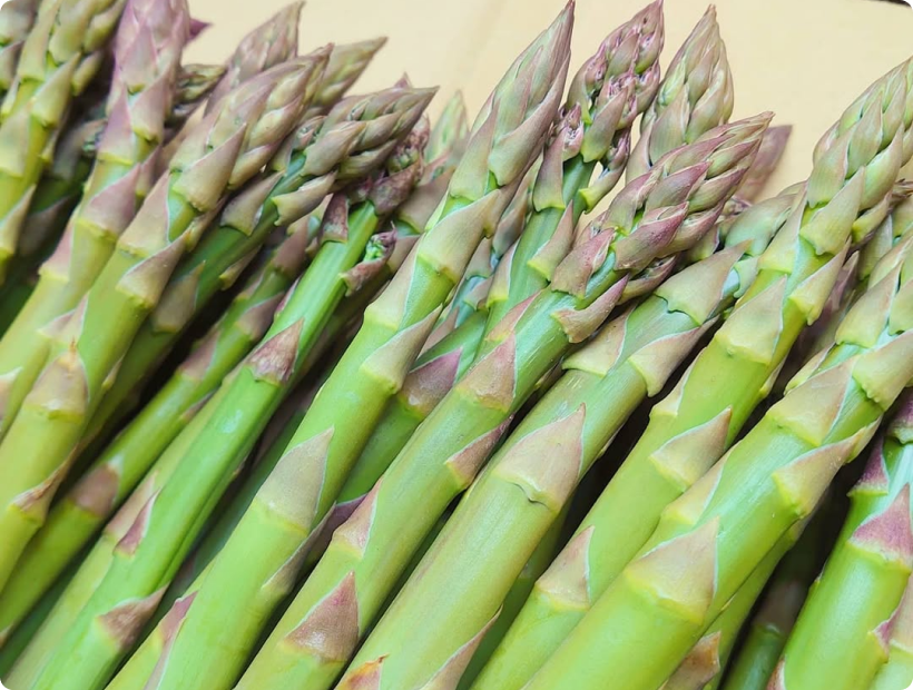 春の訪れを告げるアスパラは、朝採れをそのまま直送。