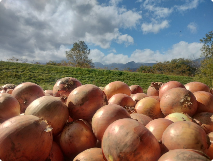 富良野の土で育つ玉ねぎは、辛味が少なく加熱すると驚くほど甘みが引き立ちます。
